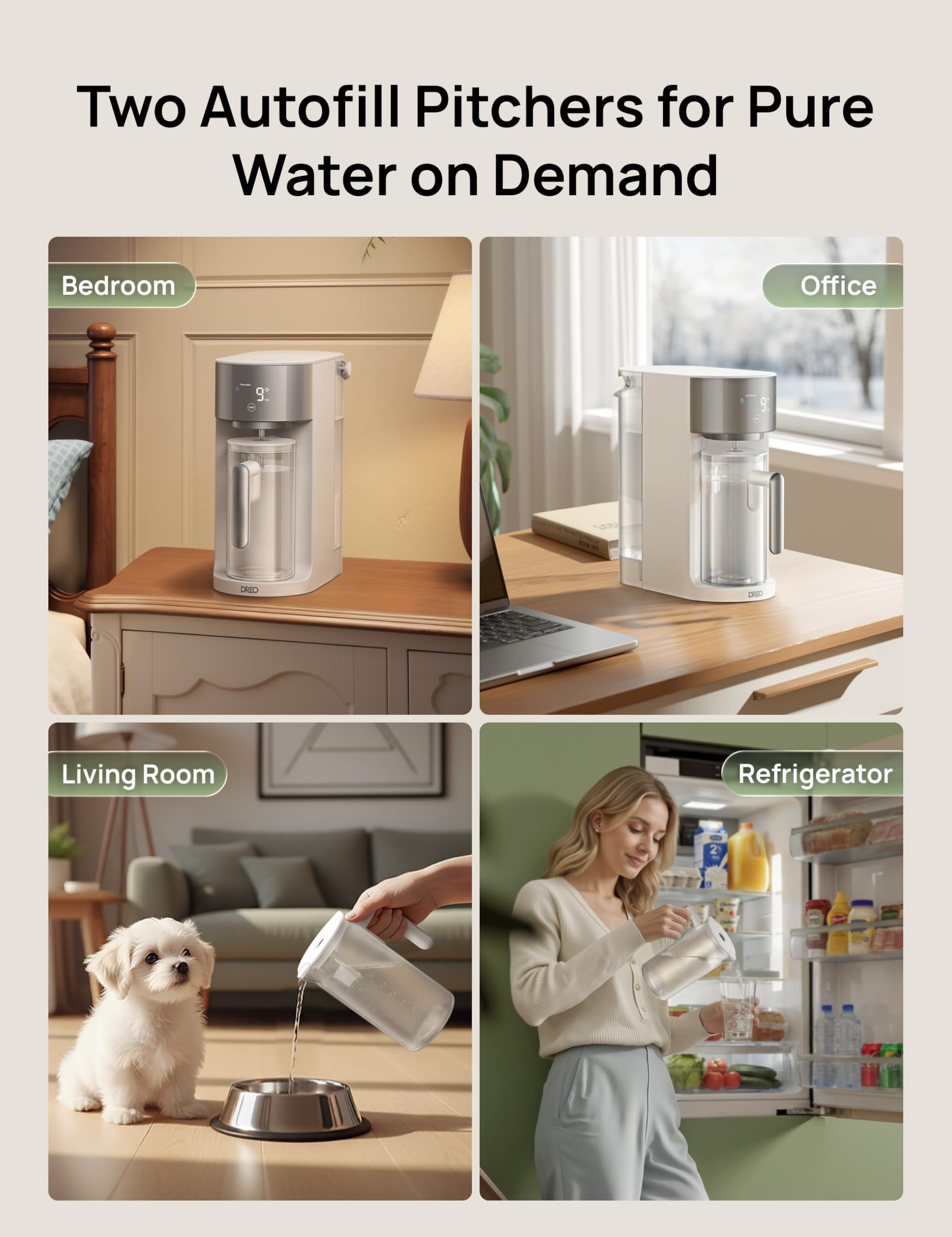 - ๐๐ฟ๐ถ๐ป๐ธ ๐ฎ๐ป๐๐๐ถ๐บ๐ฒ, ๐ฎ๐ป๐๐๐ต๐ฒ๐ฟ๐ฒ๏ผDREO water pitcher sits in the living room, kitchen, bedroomโeven inside the fridgeโso pure water is always within armโs reach