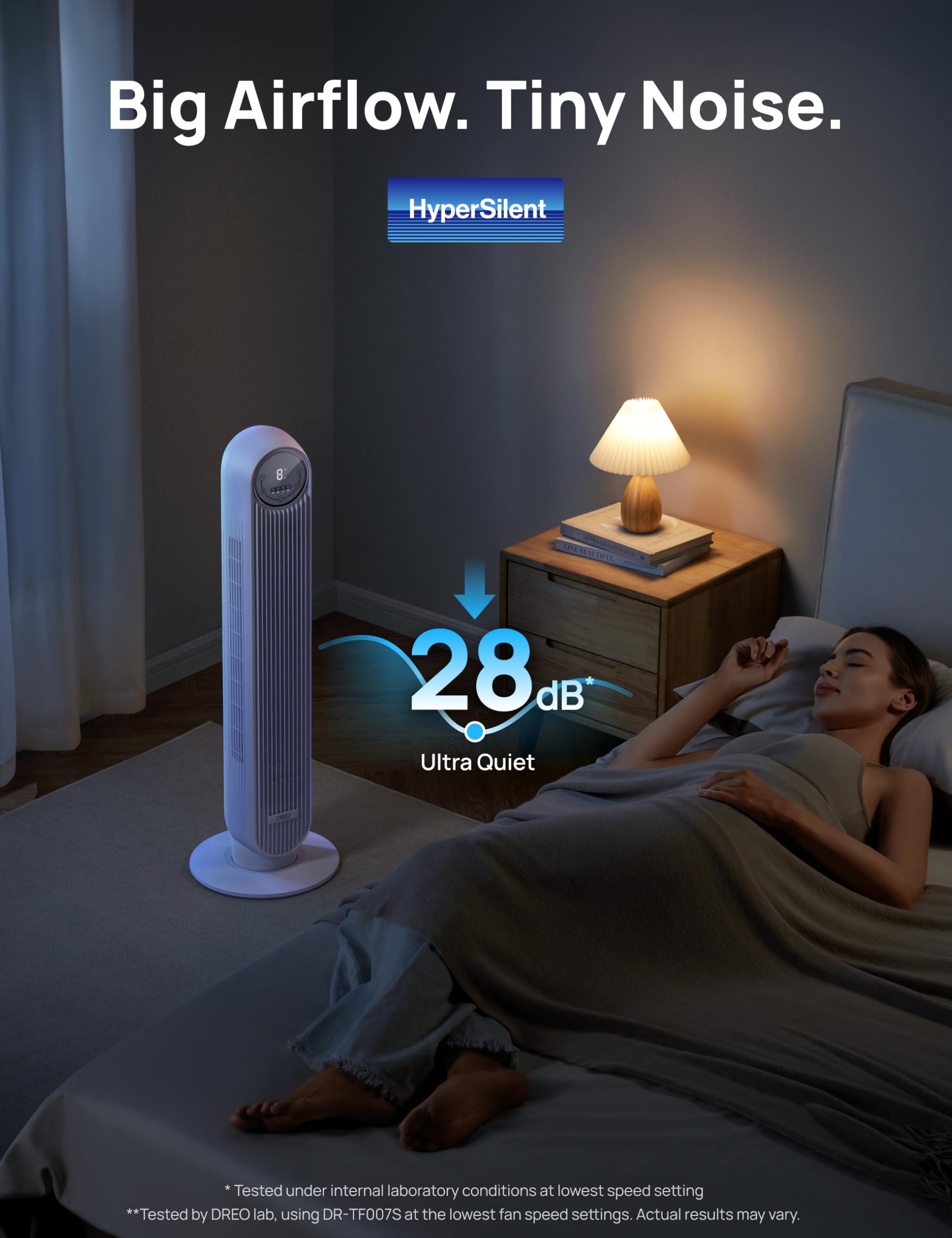 - Bring Comfort All-around: This DREO 36-inch compact tower fan can bring comfort all around due to 90°oscillation and high-speed, spatial cooling at up to 25ft/s, produced by DREO's all-in-one airflow system combines with a supercharged electric motor. This fan for bedroom enlivens every inch of air in your living space.